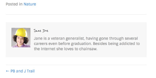 You can enable an author box, which appears under single posts between the category and the previous post navigation, as shown in this example.