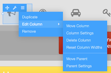 - Mouse over the module options in the column you want to move and click the Edit column icon to display the column choices.