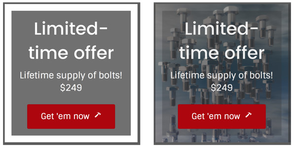 And here's the same content in a Call to Action module placed in a column, with the border set on the column. The icon can only appear on the button, and there is no provision for adding an image, though you can add one as a column or row background, as shown in the version on the right.