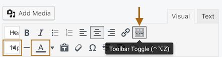 You can style your text using either the toolbar on this text editor or the Style tab. If you want to style specific parts of the text, use the toolbar above the editor. You can expose the second row of the toolbar by clicking the rightmost icon in the first row: